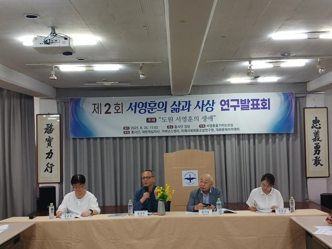 -Á¦2ȸ ¼¿µÈÆ »î°ú »ç»ó ¿¬±¸¹ßǥȸ °³ÃÖ- ¼¿µÈÆ ¼±»ýÀ» ±â¸®´Â <Á¦2ȸ ¼¿µÈÆÀÇ »î°ú »ç»ó ¿¬±¸¹ßǥȸ>(¼¿µÈÆ ¹ßǥȸ)°¡ 8¿ù 26ÀÏ(È) ¿ÀÈÄ 3½Ã, Èï»ç´Ü °´ç¿¡¼ ¼ºÈ²¸®¿¡ °³ÃֵǾú½À´Ï´Ù. 1ºÎ °³È¸½Ä¿¡¼´Â °æ°úº¸°í¿¡ ÀÌ¾î ±è½ÅÀÏ ¼±â¸ð °í¹®(Àü ±³À°ºÎÃѸ®)ÀÌ Àλ縻À» ÀüÇß½À´Ï´Ù. À̾îÁø 2ºÎ ¹ßǥȸ¿¡¼´Â Ãֱ⿵ ¸í¿¹±³¼ö(¼°´ë)°¡ ÁÂÀåÀ» ¸Ã¾Æ ÁøÇàÇÏ¿´À¸¸ç, ÇѱԹ« ±³¼ö(±¤Áִ롤±âµ¶±³¿ª»ç¿¬±¸¼ÒÀå)°¡ ¡°¼¿µÈÆÀÇ »ý¾Ö¡±¶ó´Â ÁÖÁ¦·Î ¹ßÇ¥ÇÏ¿´½À´Ï´Ù. ÀÌ¾î ±èµ¿¼± ¿¬±¸¿ø(¼¿ï¿ª»çÆíÂù¿ø)°ú Àå±Ô½Ä ±³¼ö(Áß¾Ó´ë)°¡ Åä·ÐÀ» À̾°í, Âü¼®ÀÚµéÀÇ Á¾ÇÕÅä·ÐÀ¸·Î ¸¶¹«¸®µÇ¾ú½À´Ï´Ù.