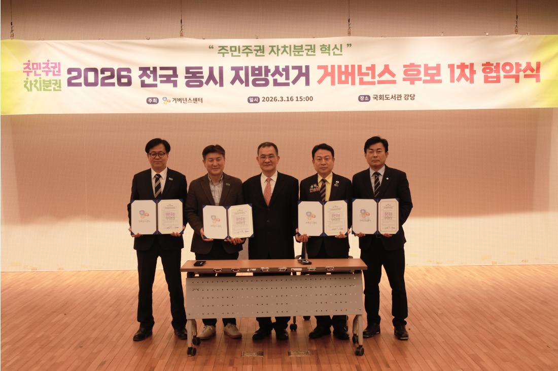 ¡°Áö¹æÀÚÄ¡ 35³â »ó¡ ù 10¼± µµÀü¡± ¾Èµ¿½ÃÀÇ¿ø ÀÌÀç°©, Áö¹æ¼±°Å °Å¹ö³Í½º Çù¾à 1È£ Âü¿©¡¦ 2026 Áö¹æ¼±°Å °Å¹ö³Í½º 1Â÷ Çù¾à½Ä °³ÃÖ Áö¹æÀÚÄ¡ 35³âÀ» »ó¡ÇÏ´Â 9¼± ¾Èµ¿½ÃÀÇȸ ÀÌÀç°© ÀÇ¿øÀÌ ¡®2026 Áö¹æ¼±°Å °Å¹ö³Í½º Çù¾à¡¯ 1È£ Âü¿©ÀÚ·Î ³ª¼¹´Ù. °Å¹ö³Í½º¼¾ÅÍ(ÀÌ»çÀå ÀÌÇü¿ë)´Â 16ÀÏ ±¹È¸µµ¼°ü °´ç¿¡¼ ¡®2026 Áö¹æ¼±°Å °Å¹ö³Í½º 1Â÷ Çù¾à½Ä¡¯À» °³ÃÖÇß´Ù°í ¹àÇû´Ù. À̹ø Çù¾àÀº Áö¹æ¼±°Å°¡ Àι° Á᫐ °æÀïÀ» ³Ñ¾î Á¤Ã¥ Á᫐ ¼±°Å·Î ¹ßÀüÇϰí ÁÖ¹ÎÂü¿© ±â¹Ý ÇùÄ¡ °Å¹ö³Í½º¸¦ È®»êÇϱâ À§ÇØ ¸¶·ÃµÆ´Ù. ƯÈ÷ À̳¯ Çù¾à½Ä¿¡¼´Â ±âÃÊÀÇ¿ø 10¼±¿¡ µµÀüÇÏ´Â ¾Èµ¿½ÃÀÇȸ ÀÌÀç°© ÀÇ¿øÀÌ Áö¹æ¼±°Å °Å¹ö³Í½º Çù¾à 1È£ Àι°·Î Âü¿©ÇØ ÁÖ¸ñÀ» ¹Þ¾Ò´Ù. ÀÌ ÀÇ¿øÀº ÇöÀç 9¼± ¾Èµ¿½ÃÀÇ¿øÀ¸·Î 1991³â Áö¹æÀÚÄ¡ ¼±°Å ºÎȰ ÀÌÈÄ Áö±Ý±îÁö 9ȸ ¿¬¼Ó ´ç¼±µÈ Àü±¹ ÃÖ´Ù¼± Áö¹æÀÇ¿ø °¡¿îµ¥ ÇÑ ¸íÀÌ´Ù. ƯÈ÷ °æºÏ ¾Èµ¿À̶ó´Â º¸¼ö °¼¼ Áö¿ª¿¡¼ 9¹øÀÇ ´ç¼± °¡¿îµ¥ 7¹øÀ» ¹«¼Ò¼ÓÀ¸·Î ±â·ÏÇϸç Áö¿ª À¯±ÇÀÚÀÇ ³ôÀº ½Å·Ú¸¦ ¹Þ¾Æ¿Ô´Ù. ÀÌÀç°© ÀÇ¿øÀÌ À̹ø Áö¹æ¼±°Å¿¡¼ 10¼±¿¡ ¼º°øÇÒ °æ¿ì ´ëÇѹα¹ Áö¹æÀÇ¿ø ÃÖ´Ù¼± ±â·ÏÀº ¹°·Ð ±è¿µ»ï Àü ´ëÅë·É°ú ±èÁ¾ÇÊ Àü ÃѸ®ÀÇ 9¼±À» ³Ñ¾î¼´Â Á¤Ä¡»çÀû ±â·ÏÀÌ µÉ °ÍÀ¸·Î Àü¸ÁµÈ´Ù. À̹ø Çù¾à¿¡´Â ±âÃÊÀÇ¿ø¡¤±¤¿ªÀÇ¿ø¡¤±âÃÊ´ÜüÀå Ã⸶ ¿¹Á¤ Á¤Ä¡ÀÎ µî Àü±¹¿¡¼ ÃÑ 14¸íÀÌ Âü¿©Çß´Ù. ±âÃÊÀÇ¿ø ºÎ¹®¿¡¼´Â ÀÌÀç°© ¾Èµ¿½ÃÀÇ¿øÀ» ºñ·ÔÇØ À̽ÂÈÆ ºÀȱºÀÇ¿ø, À±¿ë¼® Àü °í¾ç½ÃÀÇ¿ø, ¹èÇâ¼± Àü °æ»ê½ÃÀÇ¿ø, Á¤°æÀº ´ë±¸ ¼ö¼º±¸ÀÇ¿ø, ½É¿Â ±¸¸®½ÃÀÇ¿ø ¿¹ºñÈĺ¸ µîÀÌ Âü¿©Çß´Ù. ±¤¿ªÀÇ¿ø ºÎ¹®¿¡¼´Â Àü±âdz °æ»ó³²µµÀÇ¿ø, ½Å¹ÎÈ£ Àü¶ó³²µµÀÇ¿ø, Àå½ÂÈñ °æ±âµµÀÇ¿ø ¿¹ºñÈĺ¸, °ÅÂâ Àü¶óºÏµµÀÇ¿ø µîÀÌ À̸§À» ¿Ã·È´Ù. ±âÃÊ´ÜüÀå ºÎ¹®¿¡¼´Â ¾È½Â³² Àü ±¸¸®½ÃÀå, Á¶À¯Áø ¿µµîÆ÷±¸Ã»Àå ¿¹ºñÈĺ¸, ±èµ¿¿í µµºÀ±¸Ã»Àå ¿¹ºñÈĺ¸, ±èº¸°æ ´Þ¼º±º¼ö ¿¹ºñÈĺ¸ µîÀÌ Âü¿©Çß´Ù. Çù¾à½Ä ÀÌÈÄ¿¡´Â ÁÖ¹ÎÁÖ±Ç °È¿Í ·ÎÄà °Å¹ö³Í½º °íµµÈ¸¦ À§ÇÑ Áö¹æ¼±°Å °øµ¿Ä·ÆäÀÎ ½Ã¹Î»çȸ °ø°³Åä·Ðȸ°¡ À̾îÁ³´Ù. °Å¹ö³Í½º¼¾ÅÍ ÀÌÇü¿ë ÀÌ»çÀåÀº ¡°Áö¹æÀÚÄ¡ 35³âÀ» ¸Â¾Æ Áö¹æÁ¤Ä¡¸¦ Á¤Ã¥ Á᫐ ¼±°Å·Î ÀüȯÇϰí ÁÖ¹ÎÂü¿©¿Í ÇùÄ¡ °Å¹ö³Í½º¸¦ È®»êÇϱâ À§ÇÑ Ã¹ ½Ãµµ¡±¶ó¸ç ¡°Áö¹æÁ¤Ä¡ Çõ½ÅÀÇ »õ·Î¿î Ãâ¹ßÁ¡ÀÌ µÉ °Í¡±À̶ó°í ¹àÇû´Ù. ¦¡¦¡¦¡¦¡¦¡¦¡¦¡¦¡¦¡¦¡¦¡¦¡¦¡¦¡¦¡¦¡¦¡¦¡ ¡á Çà»ç °³¿ä Çà»ç¸í : 2026 Áö¹æ¼±°Å °Å¹ö³Í½º 1Â÷ Çù¾à½Ä ÀϽà : 2026³â 3¿ù 16ÀÏ(ÀÏ) ¿ÀÈÄ 3½Ã Àå¼Ò : ±¹È¸µµ¼°ü °´ç ÁÖÃÖ : °Å¹ö³Í½º¼¾ÅÍ